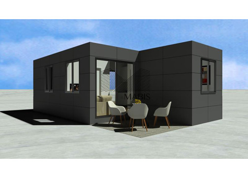 Our Prefab house is made of light steel structure or shipping containers and cement board or sandwich panels for the walls and roof.